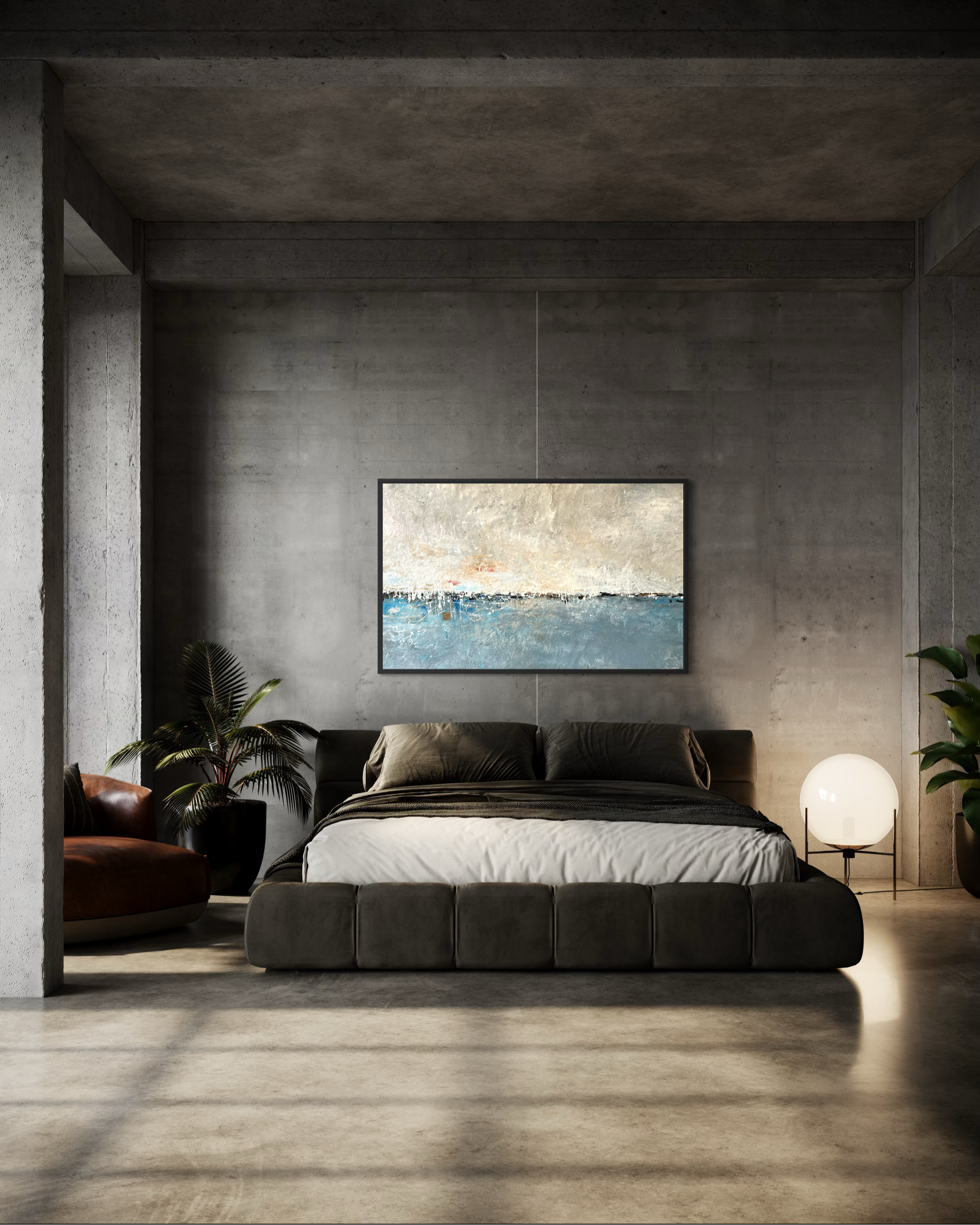 ETHEREAL An expressive, yet minimalist portrayal of a serene horizon, divided by a striking red line, reflecting the balance between earth and sky. .58”x48” MIXED MEDIA ON GALLERY-WRAP CANVAS$5,703 SOLD SOLD