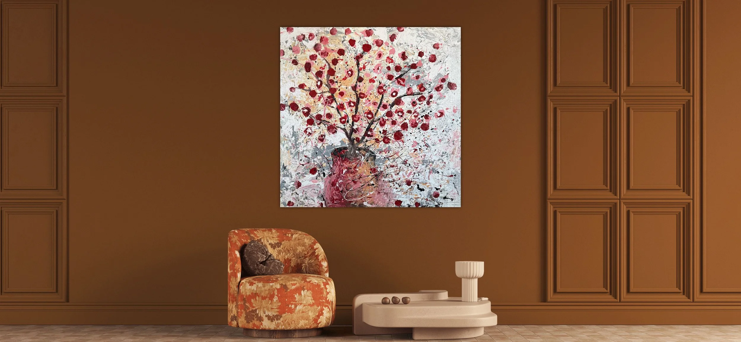 A vibrant floral painting combining impressionism with abstract expressionism.