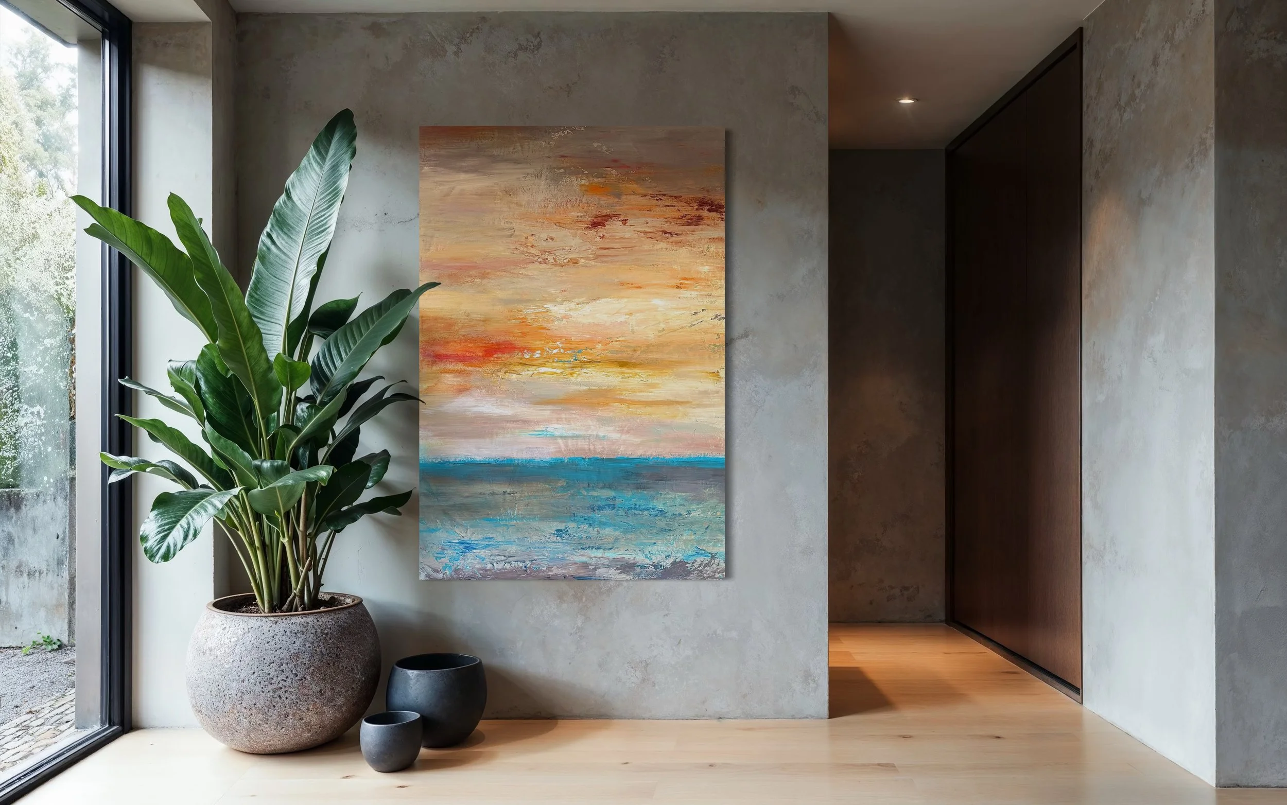 A serene portrayal of the sea meeting the sky, evoking peace and tranquility.