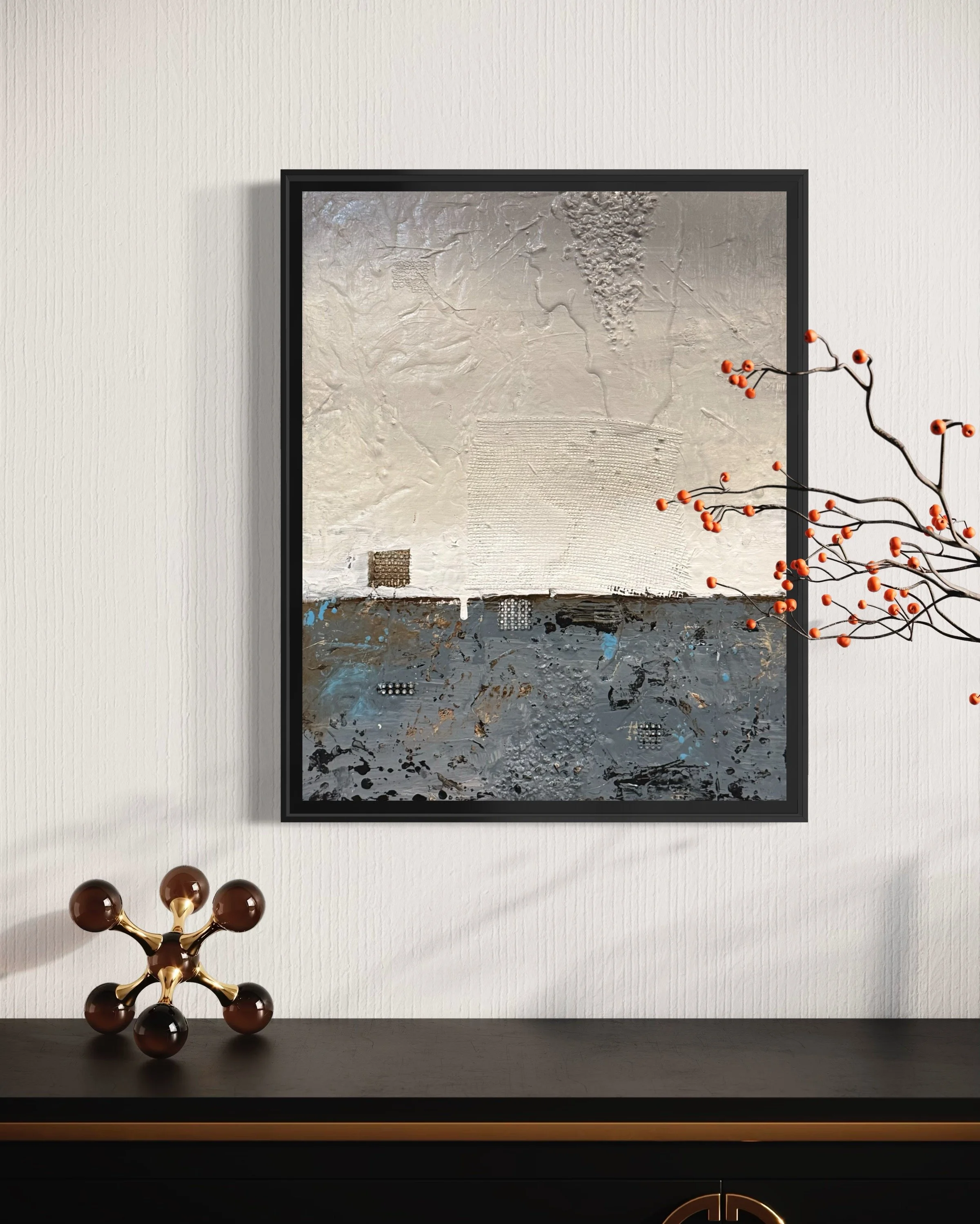 This raw and rugged collage includes thick textures (fabric, hardware) to capture the tough and resilient mindset of the Spartan Warrior within us all heading toward their destiny with conviction.