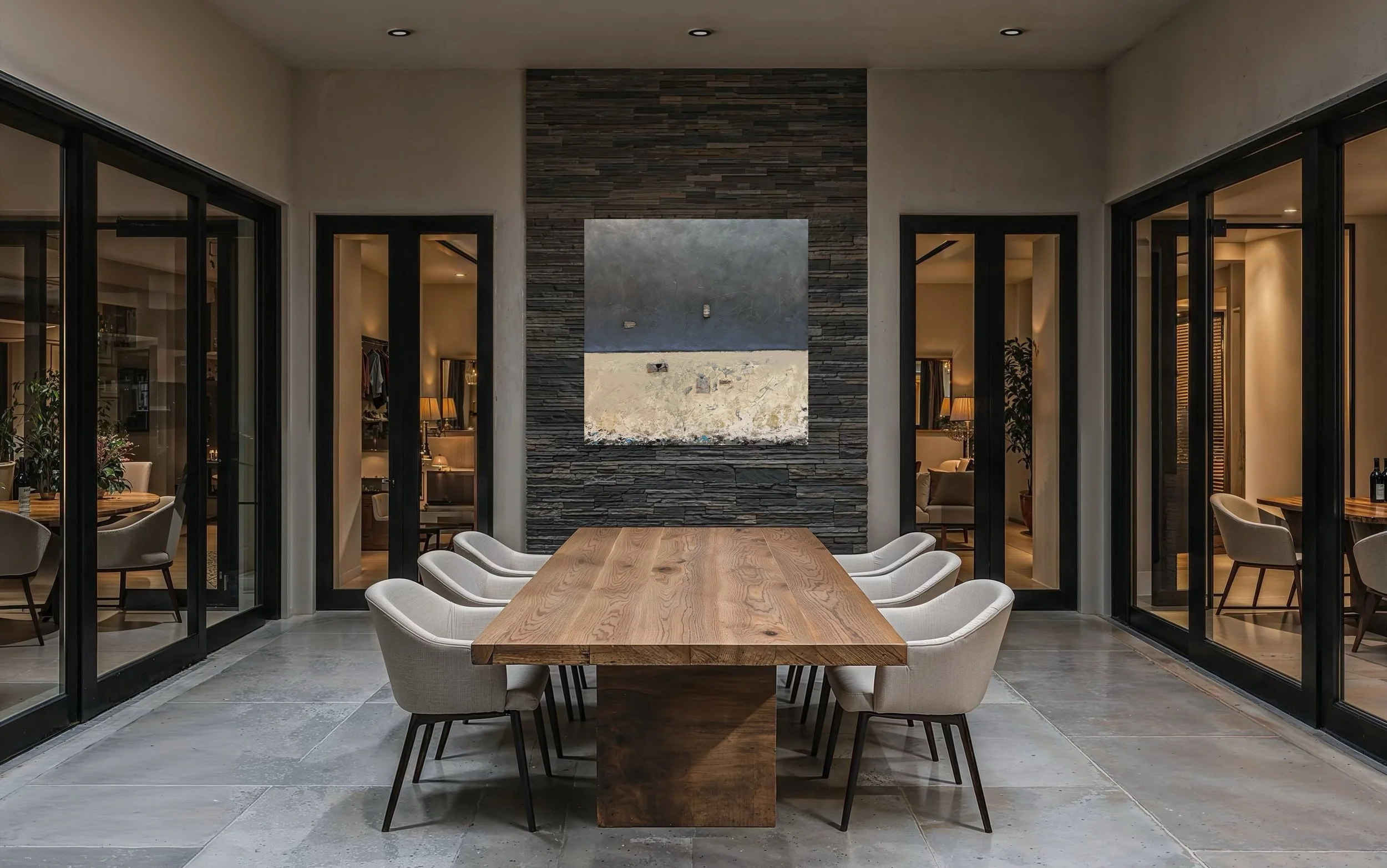 A minimalistic interplay of textures and muted colors, capturing a serene and contemplative landscape.Acrylic on board, 48”X48” (unframed)