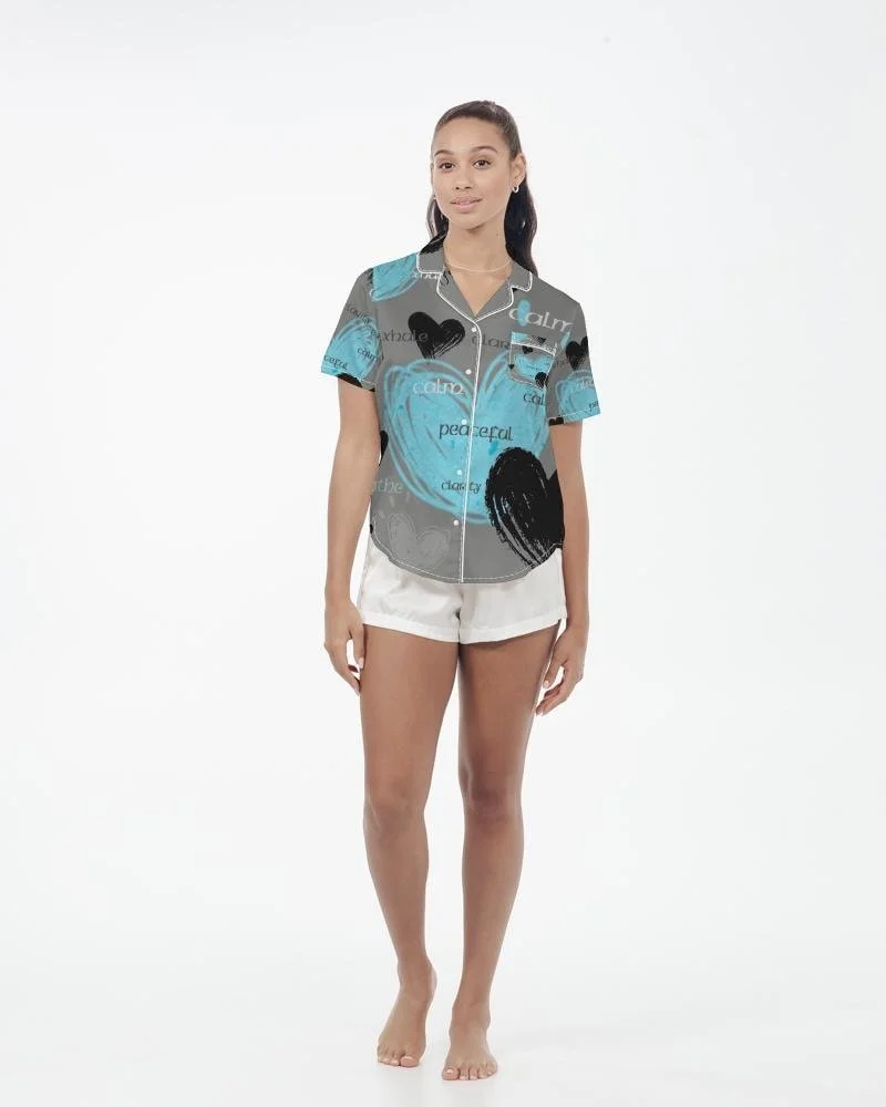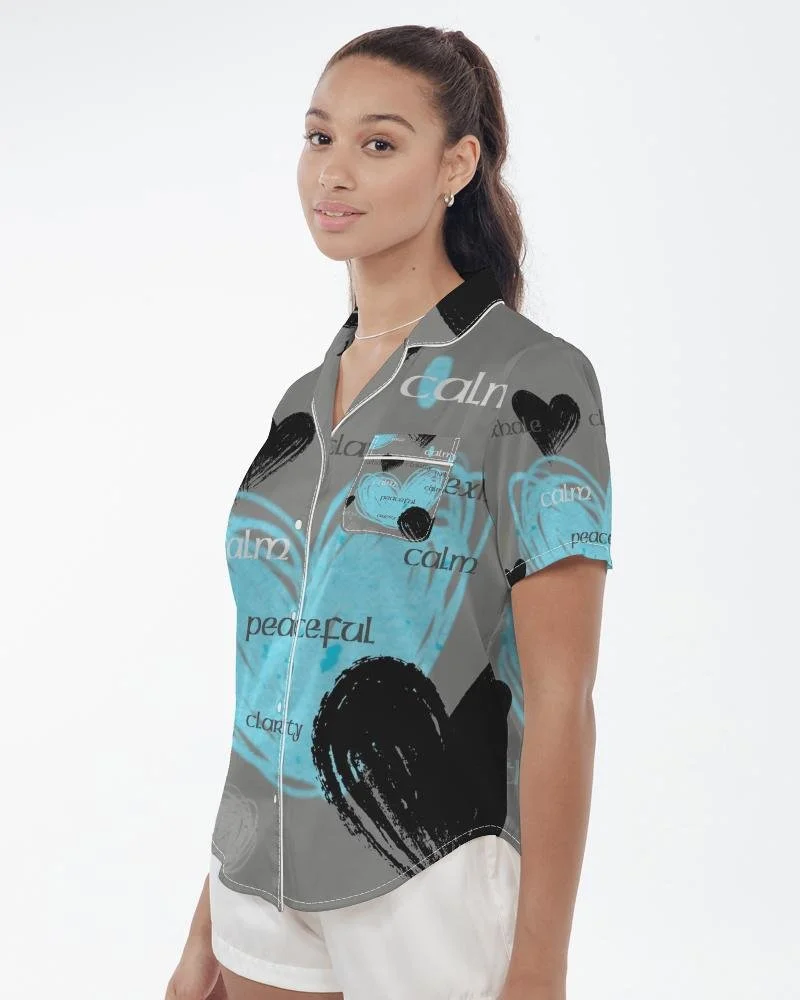 Women's Satin Short Sleeve Pajama Top ZENSATIONAL grey